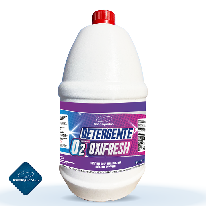 El Detergente O2 Oxifresh de Aseoliquidos es el resultado de años de investigación y desarrollo, pensado para brindar una limpieza integral y avanzada en todo tipo de prendas y superficies. Este innovador producto incorpora la poderosa tecnología del oxígeno activo, que no solo descompone y elimina manchas difíciles como grasa, vino, café y sudor, sino que también desinfecta de manera efectiva, eliminando gérmenes y bacterias.